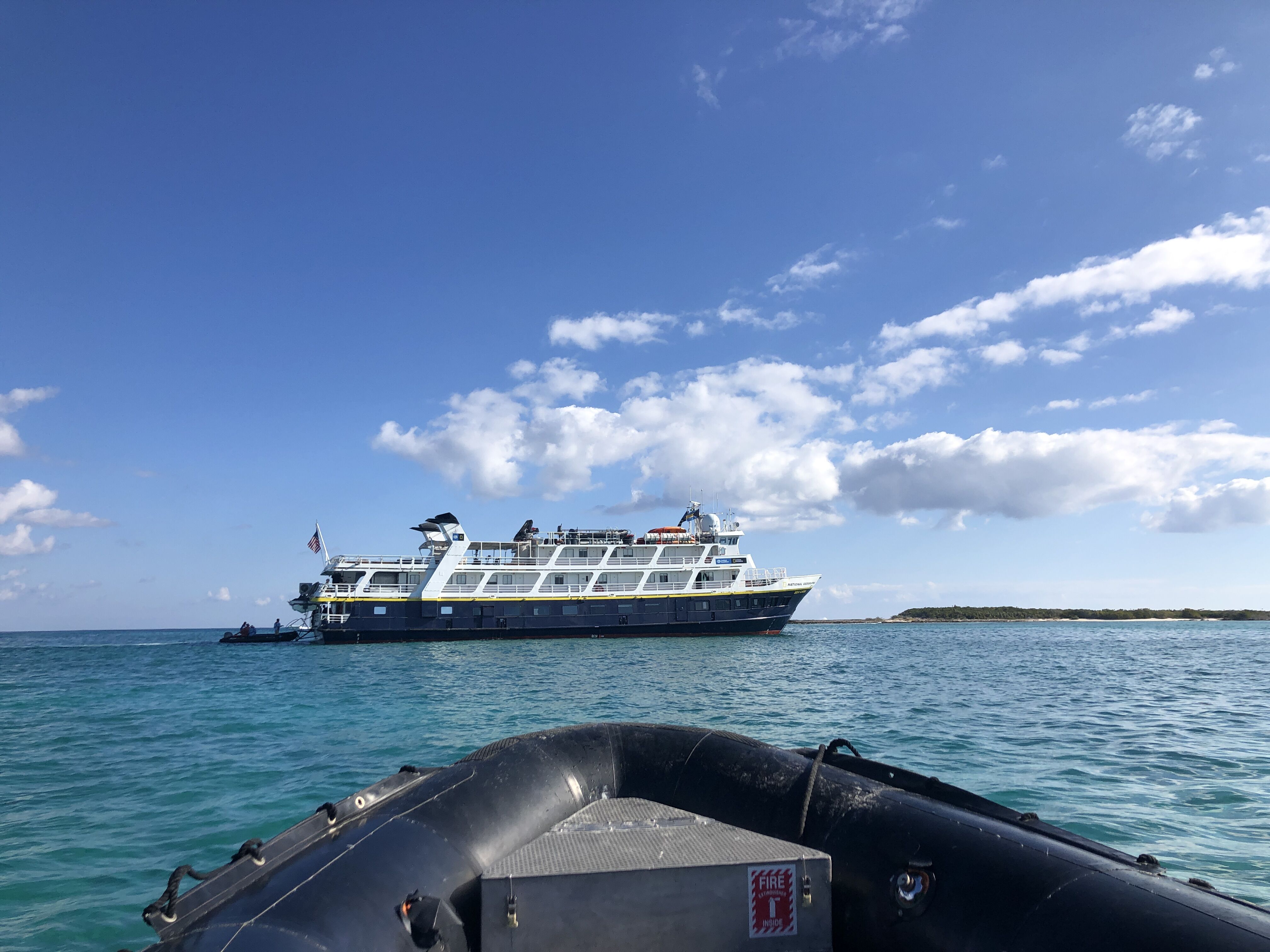 After the captain moved the ship to a different position in the afternoon, we enjoyed more activities. Some guests took a very nice walk to the grottos, beautiful rock formations on the coast. This place is home to Galapagos fur seals, one of the species of sea lions in the Galapagos. With big, puppy-like eyes and very furry bodies, these animals are half the size of Galapagos sea lions. According to the guests, they are the cutest species of sea lion. To finish the day, we walked along the beach during sunset and took in the amazing colors as we made our way back to our home, National Geographic Endeavour II.
