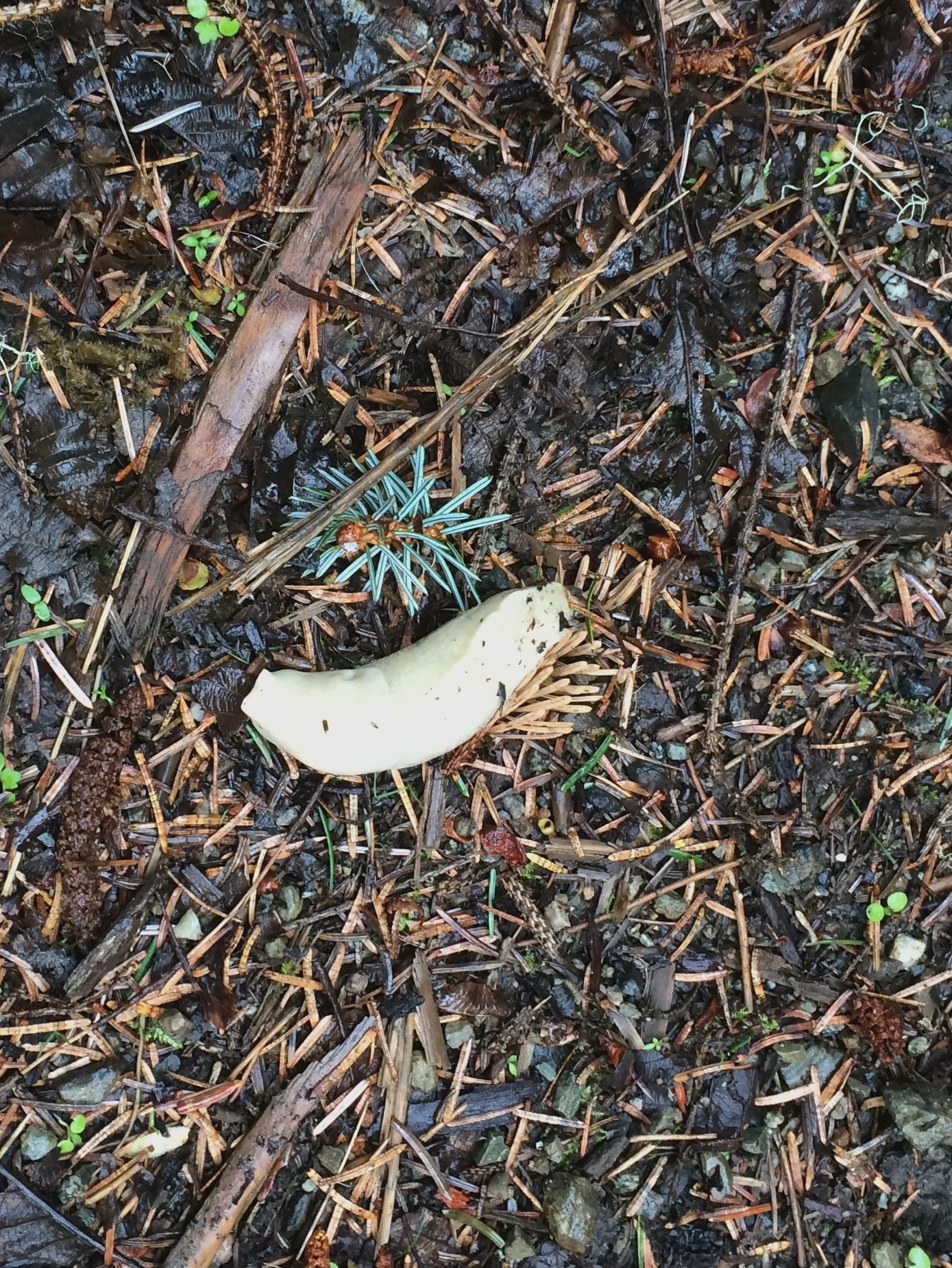 It was a day late in the summer of 2016, and it too was cold and wet. I also remembered how the toughest part of the hike was the first 200 feet, getting off the beach, and onto the old logging road that would determine the course of our adventures today. Once on the road though, it was clear walking for the next two miles down to the meadow at the head of the bay, where we hoped to see bears. I also remembered seeing, for the first time in my life, the fabled ghost slugs of Sitkoh Bay! These are a white color morph of the banana slug that I’ve only seen here, and as hard as it may be to imagine it, I look forward to seeing them whenever we are in the neighborhood.