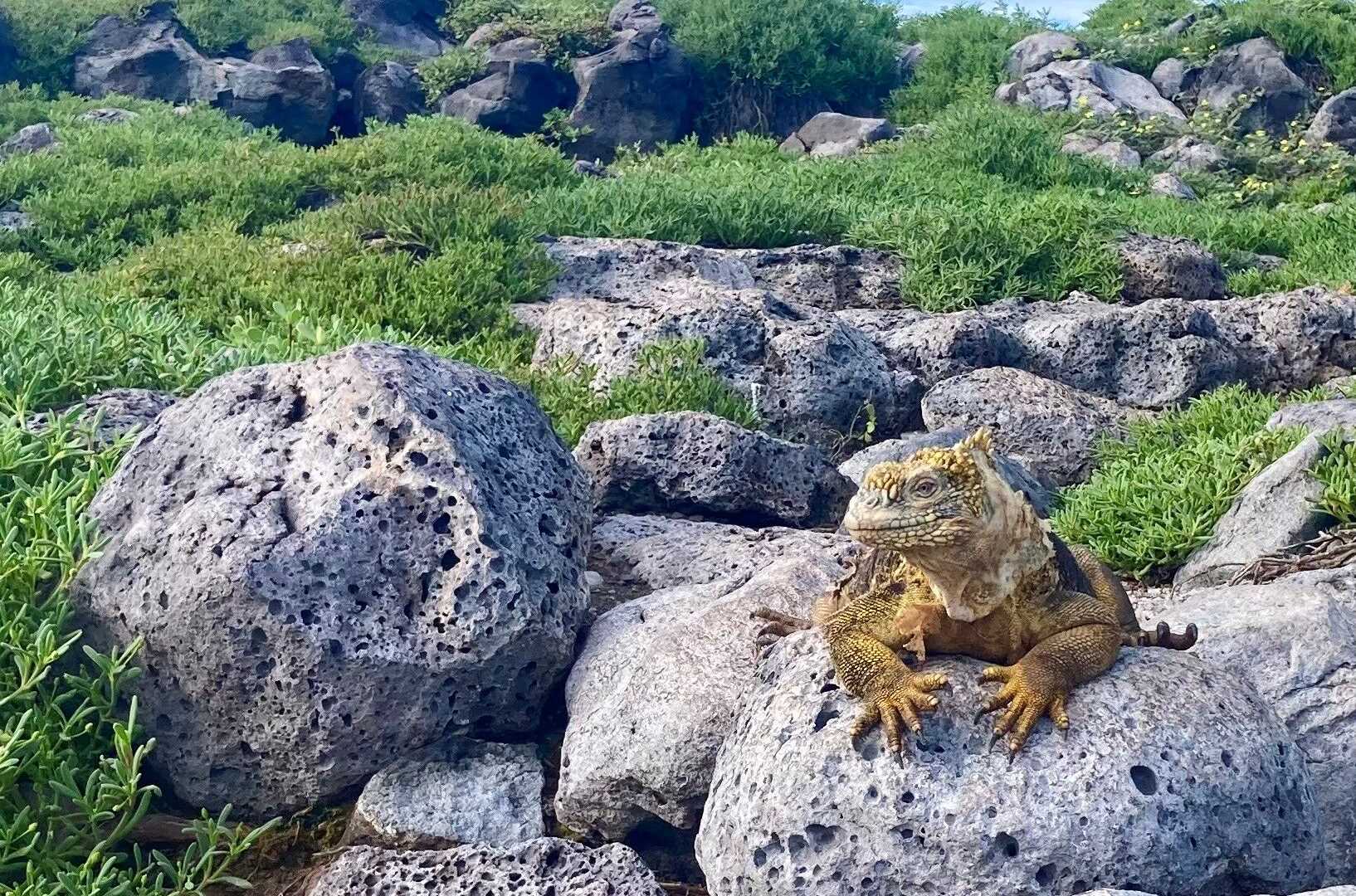 Following this incredible adventure, we went ashore to the exclusive home of the Santa Fe land iguana. It was really fascinating to walk in a forest of gigantic Opuntia cactus looking for the iguana. And there it was!...light yellow, on top of a rock, receiving the last rays of sun. What an amazing day.