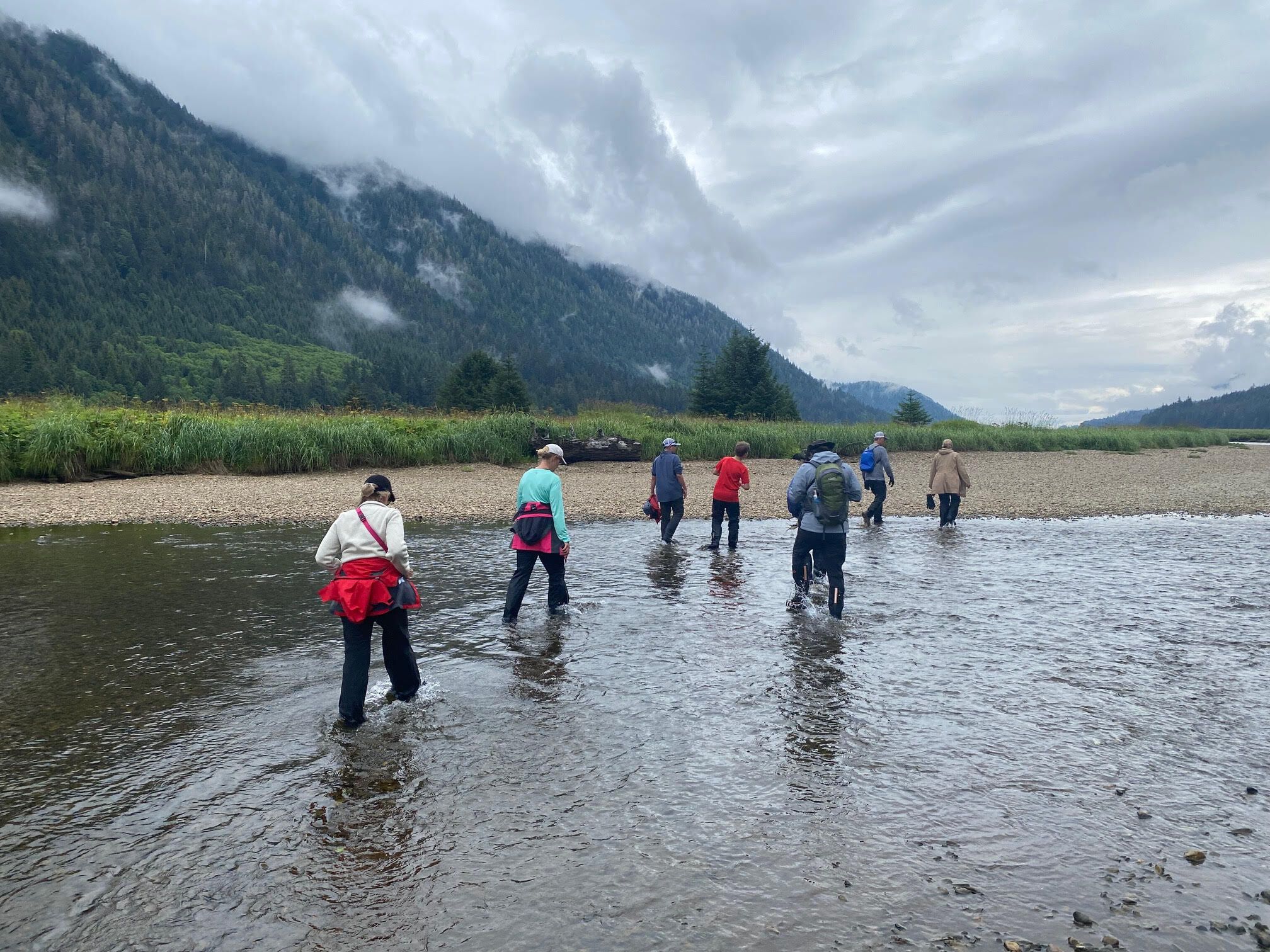 After warming up with lunch and steaming beverages (and hot showers for our polar plungers), we began to make our way north up Stephen’s Passage. It was a gorgeous afternoon, with sunshine overhead and moody clouds over the mountains. We searched and searched until we found several majestic humpback whales. We watched them dive and breathe, their spouts glowing in the afternoon sunlight. And as if the day couldn’t get any better one humpback breached seven times in a row to the collective gasps of spectators on the bow.