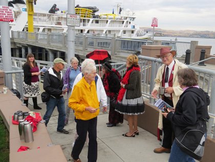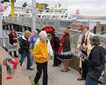 We also began to see troops of proboscis monkeys and macaques. It was the spectacular aerial display of the proboscis monkeys that captured most of our attention. Watching them leap from high up in the trees and then come crashing down in the bush below. After lunch, we went ashore and made our way to meet Dr. Galdikas at the camp. She amazed us with her stories from the early days setting up Camp Leakey and studying the orangutans. We then followed Dr. Galdikas along the rain forest trail to the feeding station. The orangutans came from the trees, not only for the bananas and milk on offer, but because they came to see Dr. Galdikas. Not only were we watching the orangutans on the feeding platform, but looking up in the trees as they were climbing up and down from high above. We were also lucky to see the alpha male named Tom with his mate and sibling as they made their way to the feeding platform and amused us with their antics.