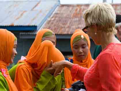 Split up in eight groups, we embarked local wooden boats, so called ‘klotoks’, and made our way up the river a little bit further. Everyone enjoyed the shade these boats provided and we even had a bit of a breeze cooling us down while we enjoyed our lunches.