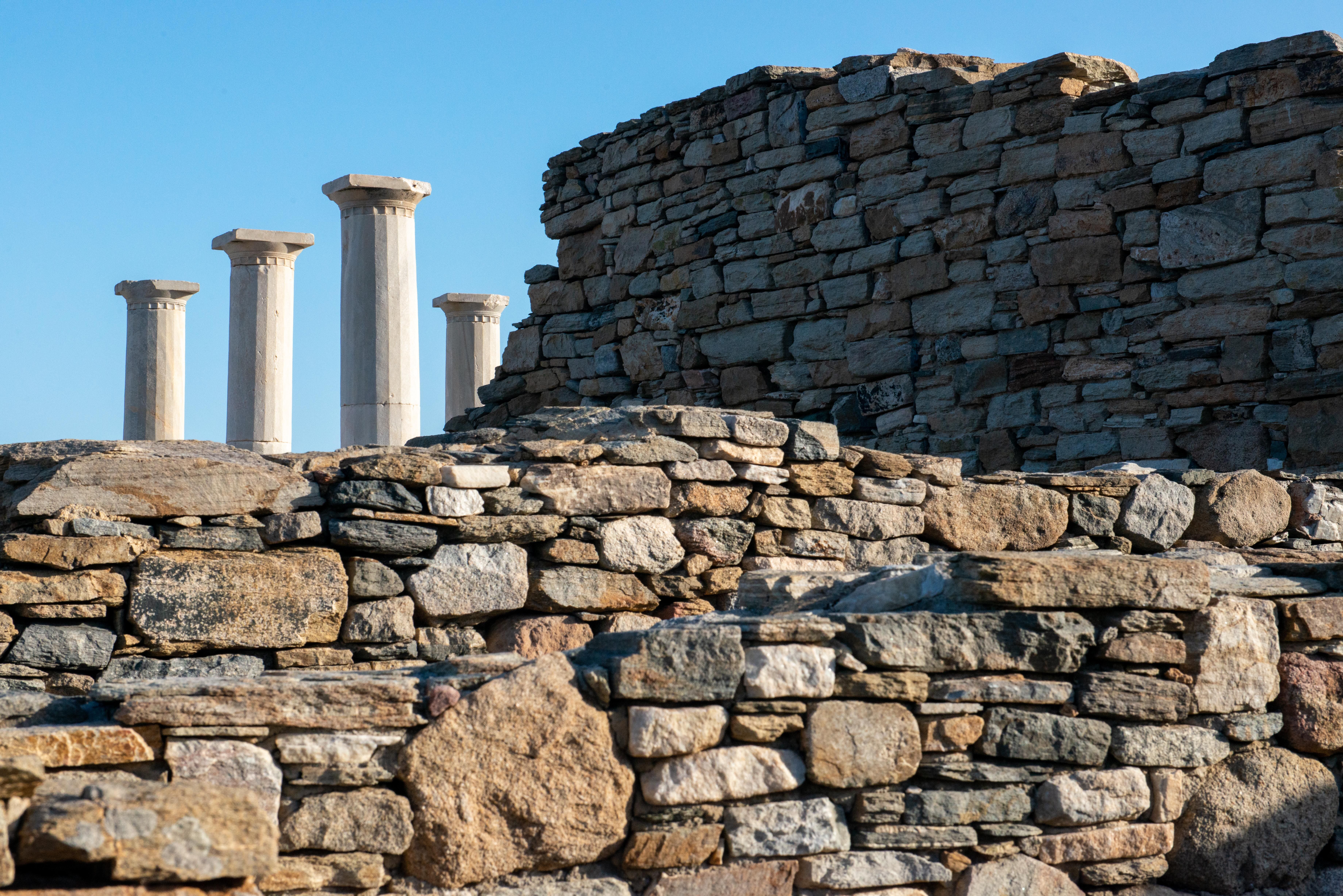 Crossing the ridge of the island in the north, we descended to the charming town of Pyrgos. We made a short visit to the town’s excellent Marble Museum, showcasing the mining and working of the fine marble for which Pyrgos and the island are famous. We then descended by foot into the village, passing among the whitewashed Cycladic houses with carved marble lintels or plaques above colorfully painted doors and windows. We arrived to the memorable central “square” with an enormous and gnarled European plane tree at its center. The square is surrounded by cafes, and our guests took a drink and tried the local galaktobureko sweet.