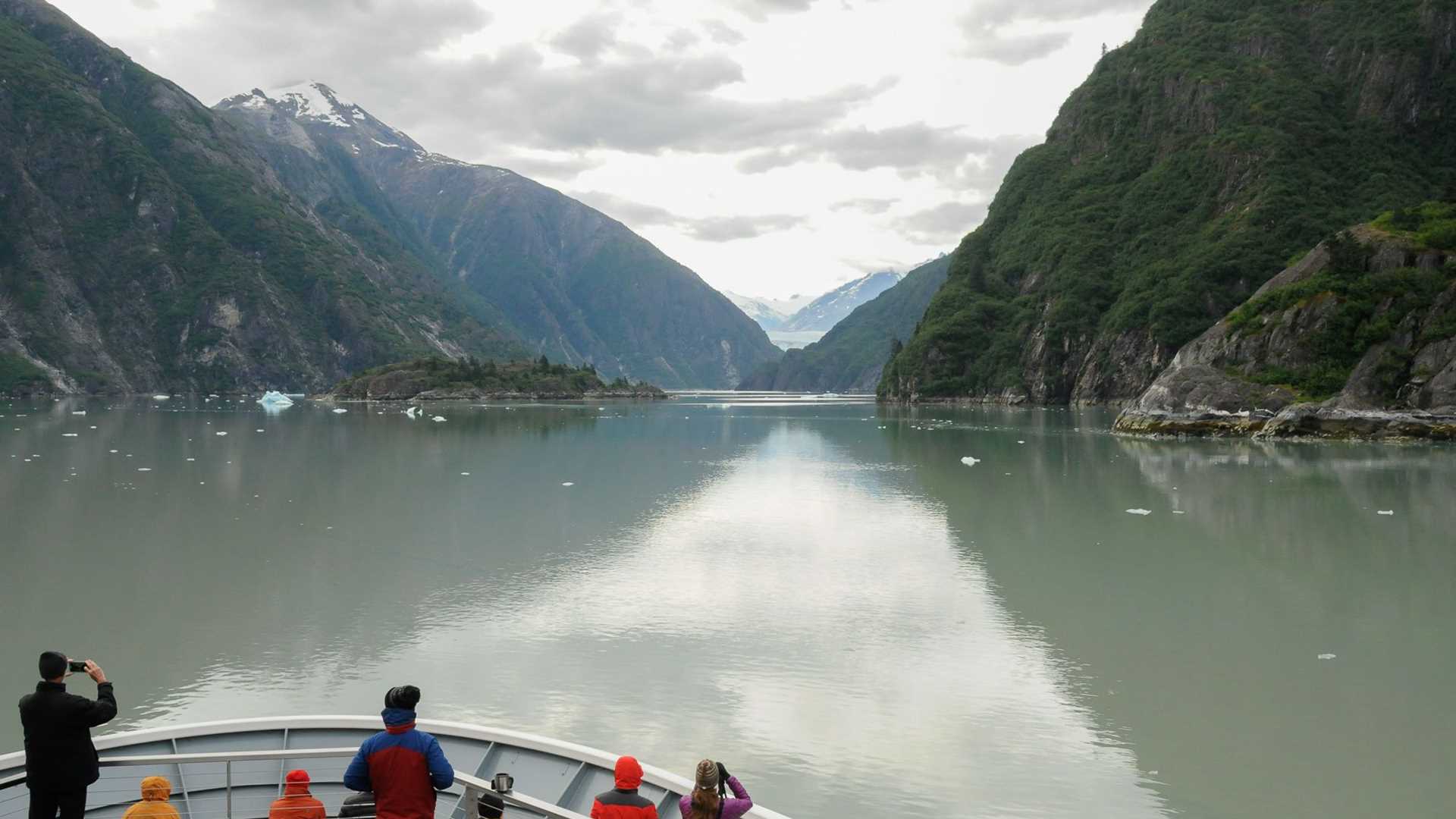 John Muir’s description of Tracy Arm as “a wild, unfinished Yosemite” felt apt this morning as we awoke among sheer rock walls, glacially-sculpted valleys, and granitic domes rising thousands of feet above us on either side of the narrow fjord. South Sawyer Glacier gifted morning Zodiac tours with the action and thunder of calving ice. We welcomed U.S. Forest Service wilderness rangers Sean and Dylan aboard National Geographic Quest for an unplanned afternoon visit. The evening closed with Captain’s Dinner and our guest photo slideshow, accompanied by smiles, laughter, and new friendships.