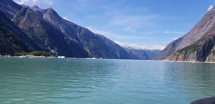 We had a fantastic lunch aboard Sea Bird before jumping back into the expedition landing crafts for a closer look at South Sawyer Glacier. As we drove, the icebergs surrounding us were spectacular! We were amazed at the deep blue color of the ice—a function of how all but the blue wavelengths of light are absorbed as they pass through the ice. Besides the icebergs, we saw harbor seals up close. And of course, the glacier itself was amazing. We waited patiently for the glacier to calve, and we were rewarded when some large chunks of ice broke off and crashed into the water below with a boom. It was the perfect way to end our adventure together in Southeast Alaska.