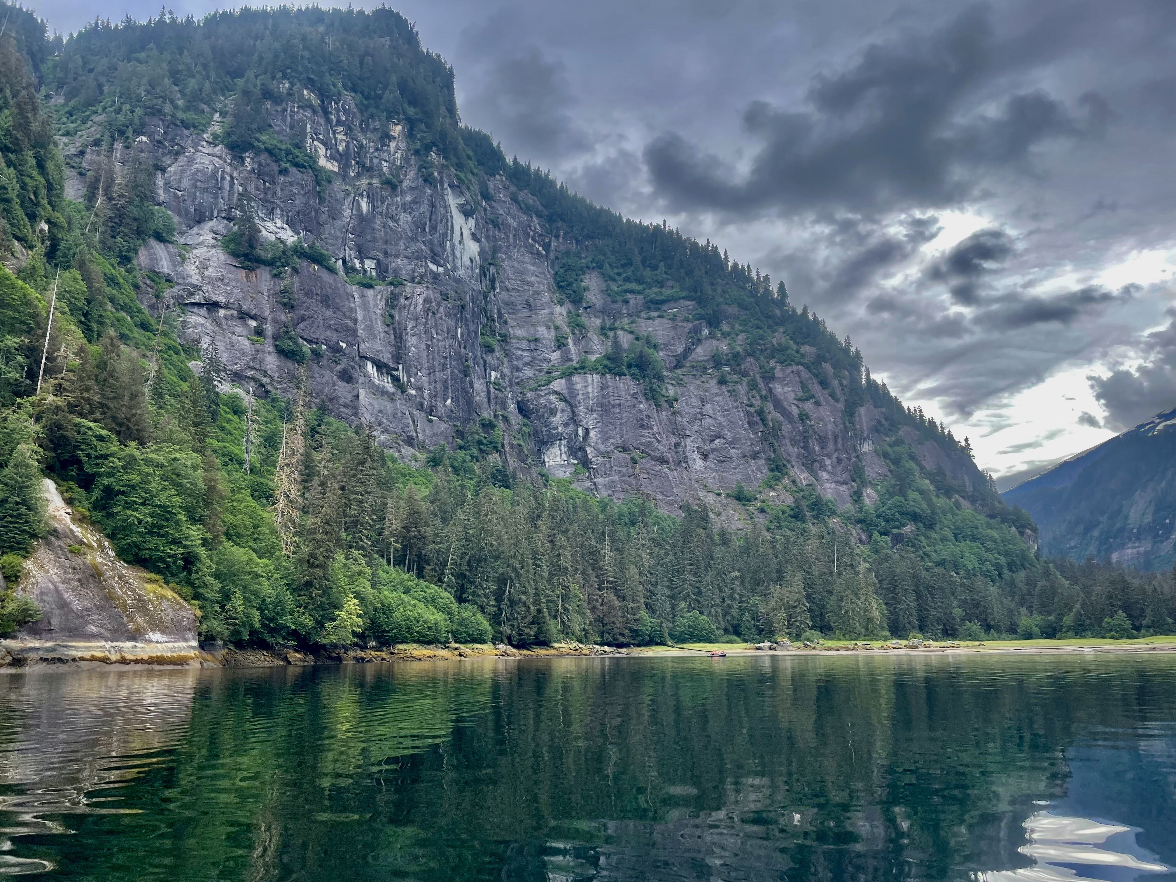 Late last night, we crossed Holkham Bay and entered Endicott Arm, a 34-mile-long glacial fjord lined by towering, steep walls of recently de-glaciated rock and forests in the early stages of succession. As we awoke this morning, we noticed that the waters were choked with an impressive amount of recently calved floating ice. The density of the ice caused us to pause our journey about six miles from the face of Dawes Glacier in a protected inlet on the north side of the upper fjord.