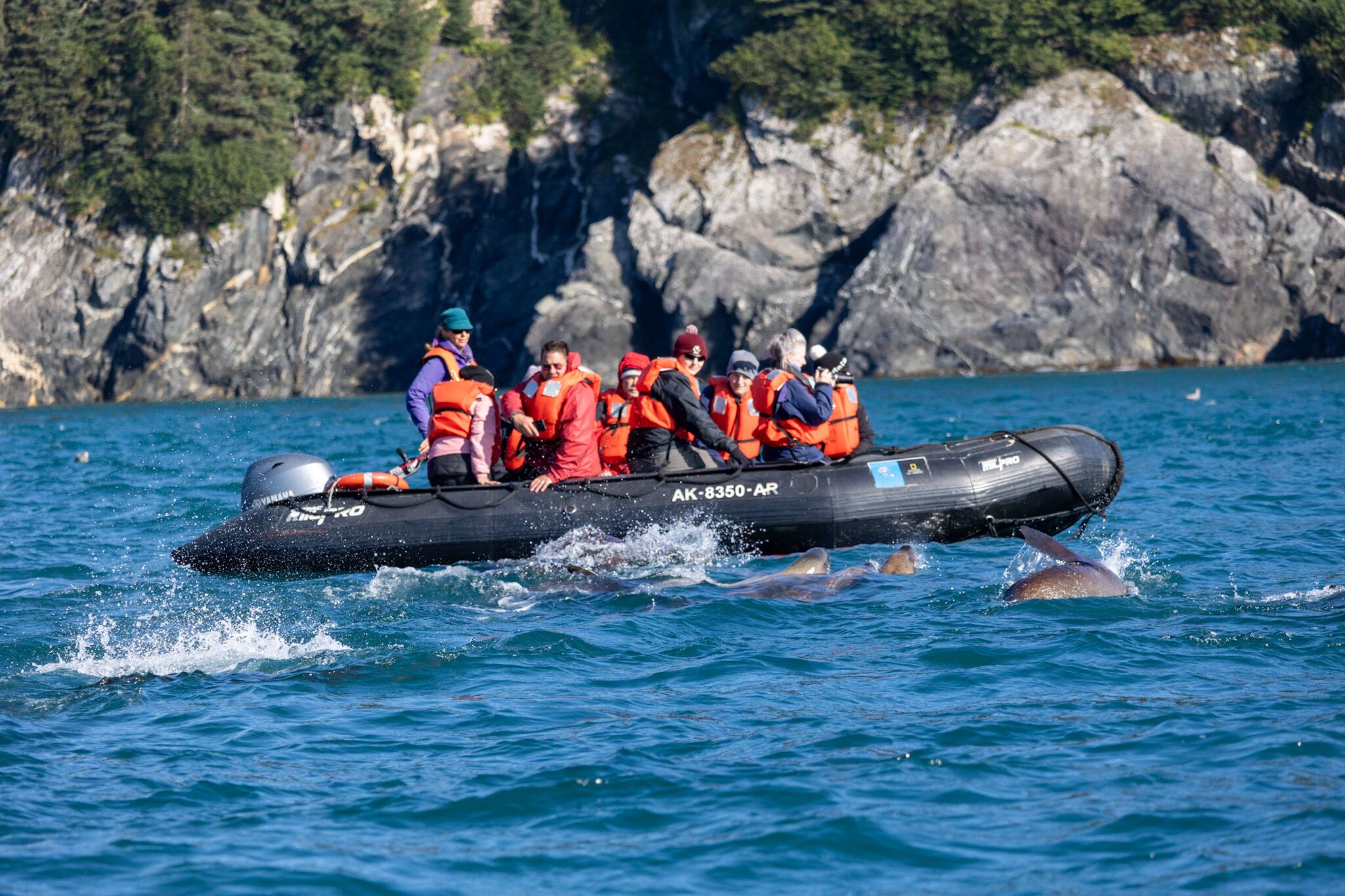 We had a wonderful first day of our trip together. We woke up near the sandbar that marks the entrance to Tracy Arm. We spent the early morning on the bow, looking at seabirds and the incredible towering rock faces of the fjord. Upon sighting South Sawyer Glacier, we dropped our Zodiacs to explore this special place in Tracy Arm-Fords Terror National Wilderness. We were lucky from the beginning. We saw three mountain goats grazing on impossibly high vegetation on the rock walls around us. As we moved closer to the face of the glacier, harbor seals inquisitively popped their heads up from all sides of our Zodiacs. We even got the chance to see some pretty remarkable calving events. During and after lunch, we enjoyed the views from National Geographic Sea Bird as we cruised towards Williams Cove near the mouth of Tracy Arm. Here, we all went ashore to explore and get our first taste of the temperate rainforest of Southeast Alaska. It was a beautiful afternoon with clear views of the nearby mountains and with lots to discover in the forest – we even enjoyed some snacking on salmonberries, blueberries, and watermelon berries along the way. We were happy to be off to such a great start!