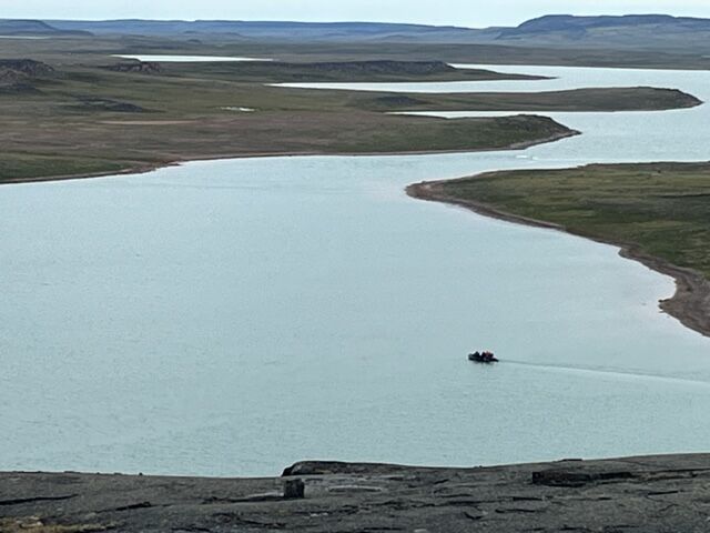 The day began with our lovely staff presenting about the tundra and the Northwest Passage, as we headed towards our next destination of Ulukhaktok, a hamlet located in the Inuvik region of the Northwest Territories. After lunch, we were greeted by the people from the hamlet who prepared hikes and walks across town.