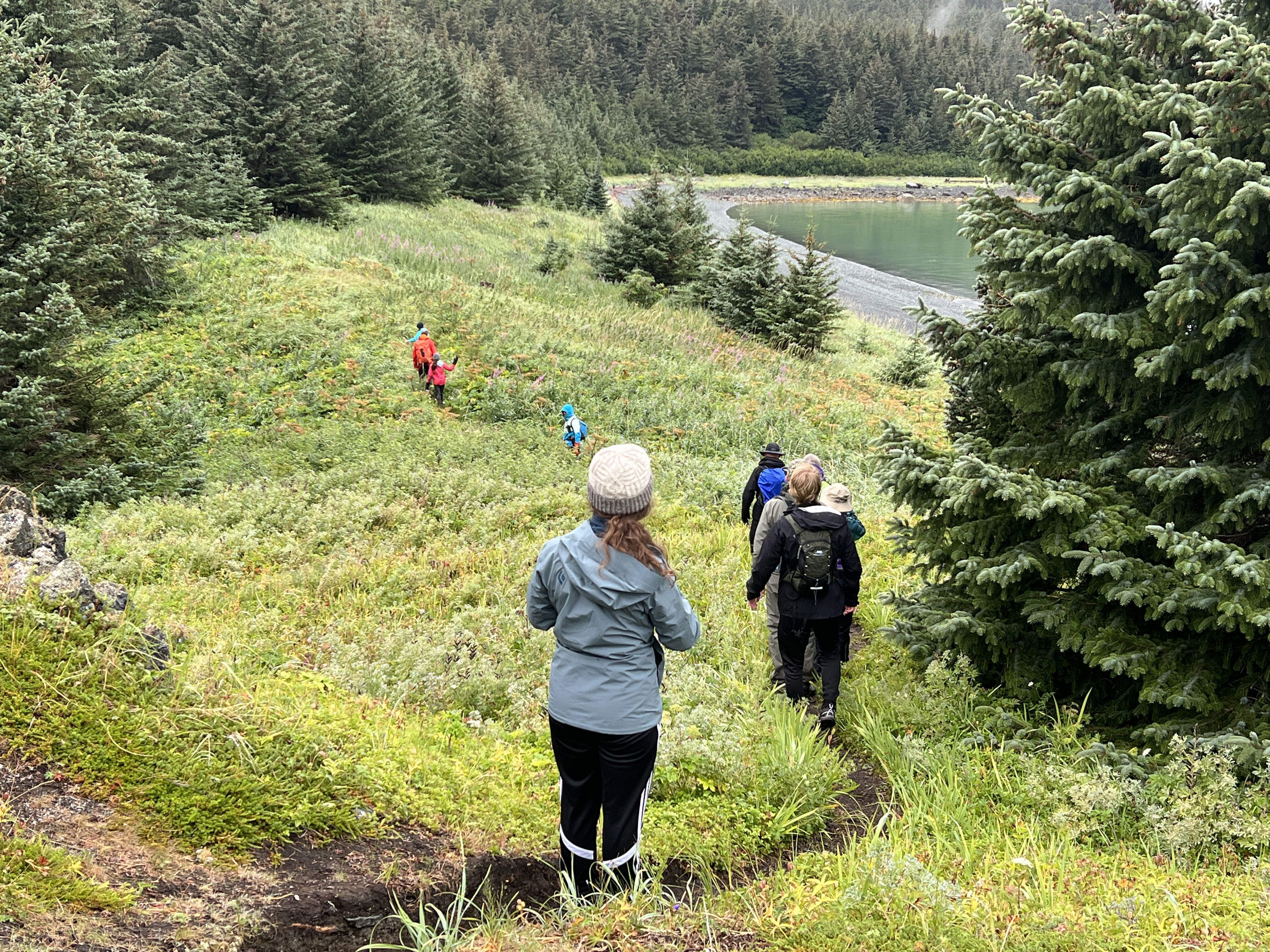 Next, we are off to explore the infamous Petroglyph Beach! No one knows who made these carvings, nor do we know exactly how old they are. Regardless, you can feel the power they carry. After the beach, we hike up Mt. Dewey, named after Melvil Dewey, the creator of the American Dewey Decimal System. Almost immediately after leaving the neighborhoods, we are in the forest with Sitka spruce trees surrounding us and drenching the air with their scent. Wildflowers, mosses, and mushrooms are some of our favorites as we climb up the small mountain. The view from the top of this short, moderate, stair-friendly hike is jaw dropping!